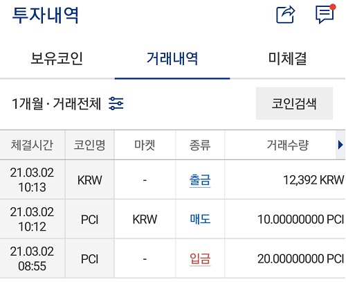 오늘 오전에 페이코인 앱에서 업비트 페이코인 지갑 주소로 20 PCI를 전송했습니다.