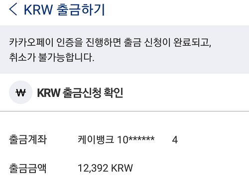 이제 원화를 K뱅크로 출금하겠습니다.
