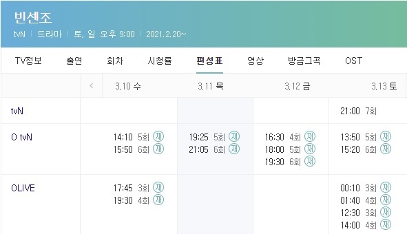 빈센조 재방송 시간은 아래와 같습니다.