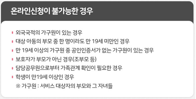 오프라인 신청은 해당 지역 행정복지센터에 방문하여 신청합니다.