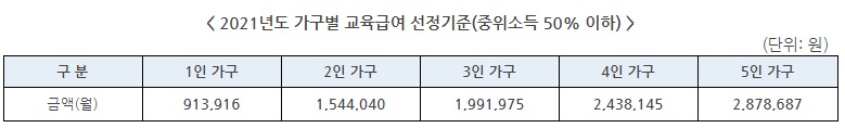 2021 초중고 교육급여 및 교육비 지원 대상