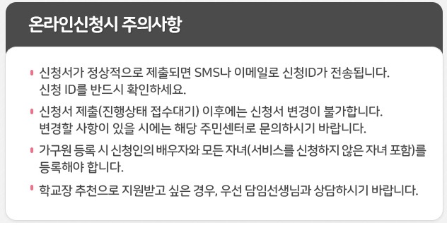 이미 신청하여 지원받고 있는 경우에는 다시 신청할 필요 없이