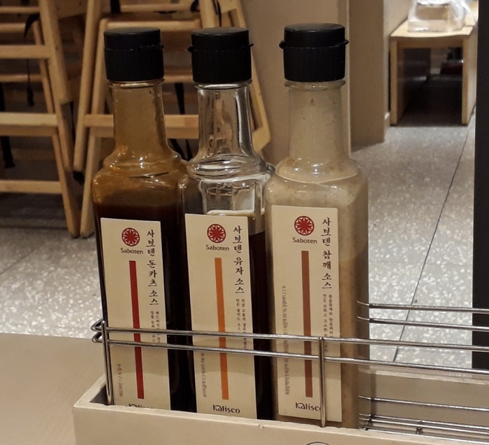 얇고 얇게 채 썬 양배추샐러드에 사보텐 유자소스나 사보텐 참깨소스를 뿌려 먹었다. 참깨소스는 고소함이 참 좋았고 유자소스는 기대했던 만큼 상큼하지 않아서 살짝 아쉬웠다.
