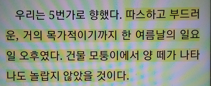 주방 일을 하면서 전자책 듣기 기능으로 듣는데도 이야기의 배경과 인물들의 특징이 생생하게 상상될 정도로 문장들이 좋았다.
