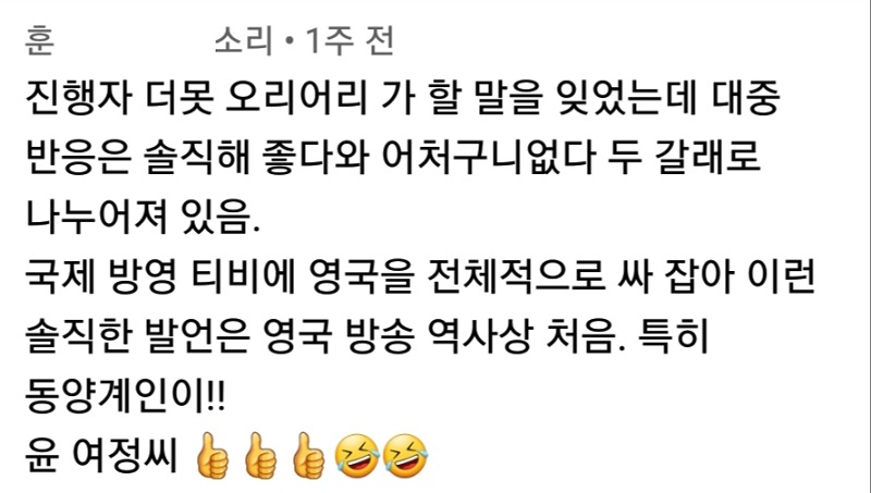 저는 윤여정님과 멀리 있고~ 솔직한 돌직구를 맞을 일도 없으니 윤여정님의 재치있는 입담을 재밌게 즐기겠습니다.^^