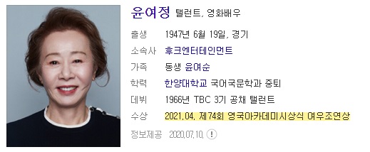 개봉관에서 미나리를 보면서 졸았지만 해외 영화제를 휩쓰는 윤여정님의 수상소식에는 아낌없이 축하하는 마음이 듭니다.