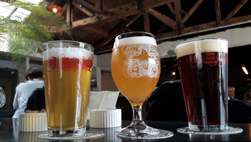 버드나무 샘플러를 주문해서 미노리 세션, 즈므 블랑, 하슬라 IPA, 백일홍 레드 에일 4종류의 맥주를 조금씩 마셔보았습니다.
