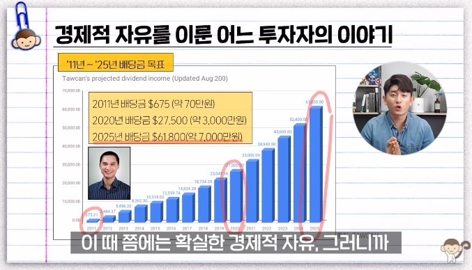 밥은 대만계 캐나다인으로 올해 38살이고 자녀가 두 명 있습니다. 밥은 2011년부터 아내와 배당투자를 시작해서 2020년에 주식 배당금만으로 시간당 약 3달러, 하루 72달러, 한 달 2160달러(한화 약 240만 원)가 들어오는 시스템을 구축했습니다.