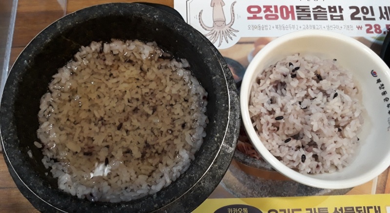 돌솥밥은 더 찰진 식감이 있지요. 돌솥에 지은 밥이 더 맛있는 이유 원적외선 방출 때문이라는 말도 있습니다.