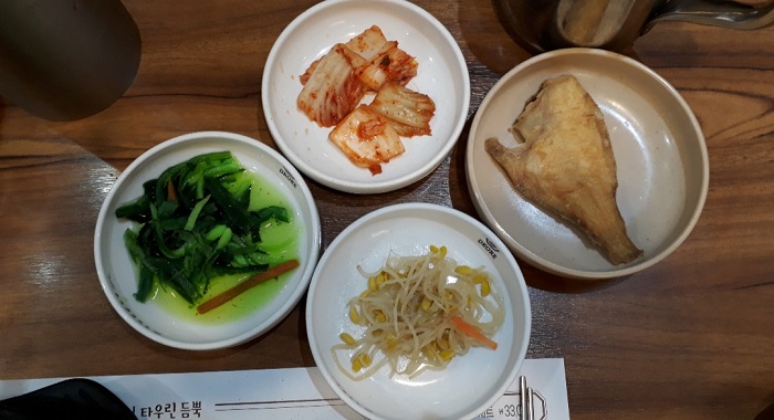 밑반찬은 김치, 콩나물, 물미역 초절임, (작디 작은)가자미 구이입니다. 맛집은 밑반찬도 하나같이 맛있는데요. 북창동 순두부집은 뜨내기손님만 대상인지 하나같이 평균이하였습니다. 밑반찬은 셀프 리필해서 드시면 됩니다.