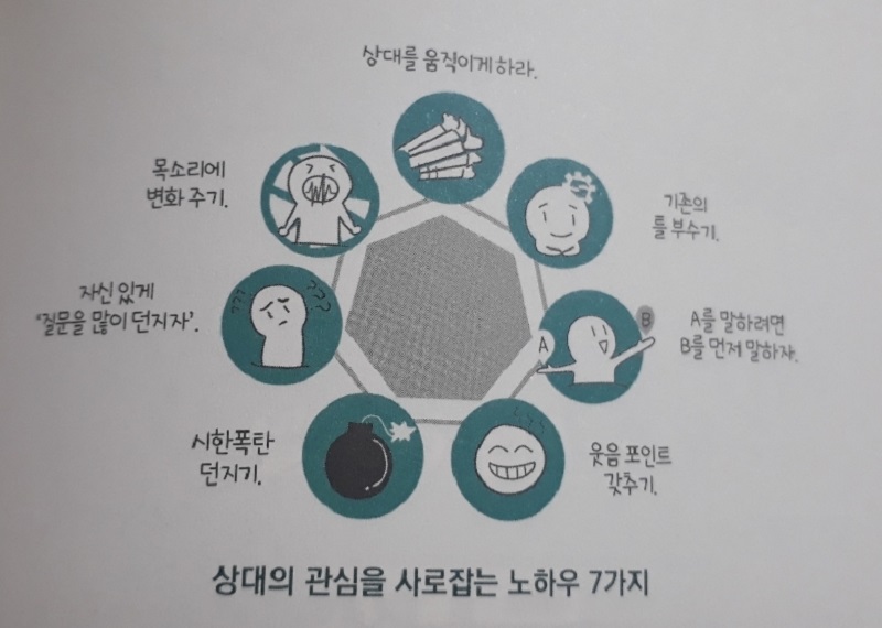 <당신만 모르는 인생을 바꾸는 대화법>에는 친구나 상사와 대화법, 강연, 영업에 도움 되는 말하기 기술이 소개되어 있습니다. 다양한 사례와 귀여운 일러스트 요약으로 지루하지 않은 책이 되었네요.