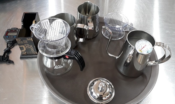 ① 핸드드립에 의한 추출 ② 커피 머신에 의한 추출