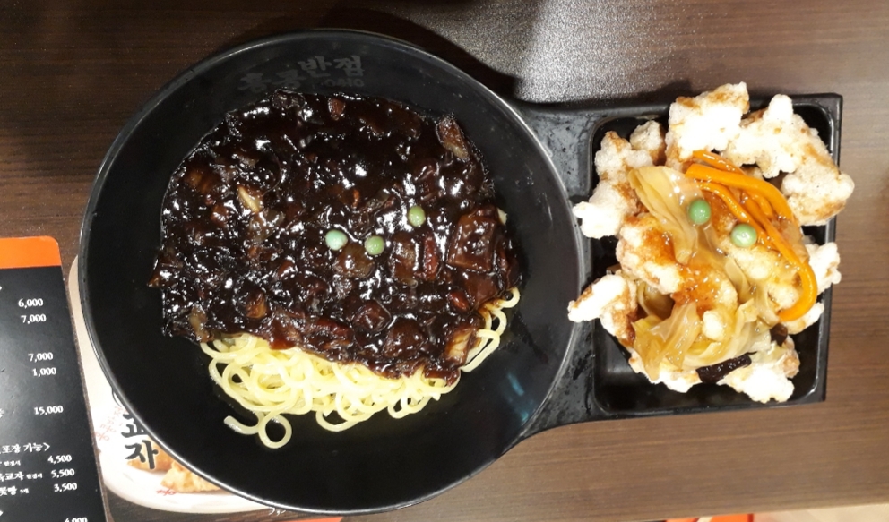 짜장면 1인분에 탕수육이 조금 곁들여 나오는 거죠.