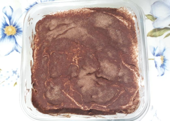 코코아 가루를 먼저 뿌리고 냉장고에 넣었습니다.