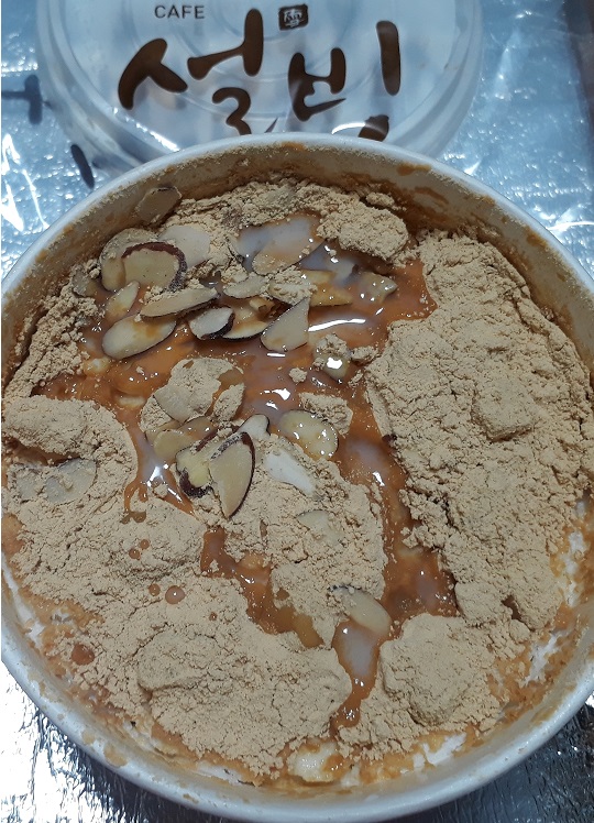 빙수빙수~ 인절미설빙을 사 온 것이다. 머리로는 먹지 마, 먹지 마... 그러나 몸은 훌라훌라 훌라훌라 짱구 댄스를 췄다.