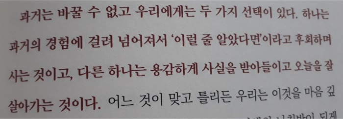 완벽주의자에 대한 이야기도 인상깊었습니다. 영국 철학자 새뮤얼은 완벽주의자로 좋은 글을 쓰지 못할까봐 전전긍긍했습니다. 결국 좋은 글을 쓰지 못하게 되자 그는 이렇게 생각했습니다. ‘대작은 내 최후의 날에 쓰겠다. 지금 쓰는 글들은 모두 초고일 뿐이다.’ 이렇게 부담감을 내려놓자 자유롭게 글을 쓰게 되었고 명작을 남기게 되었습니다.