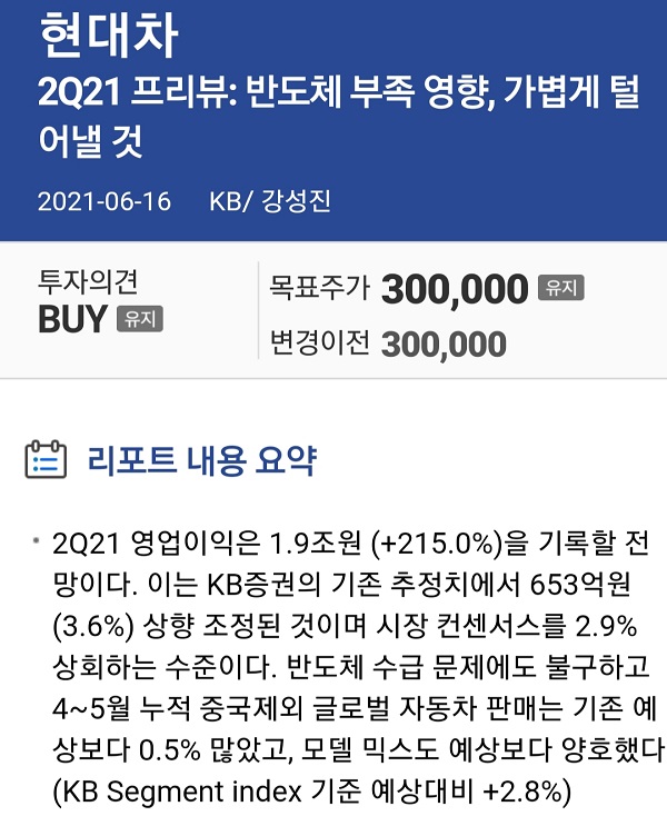 KB증권의 현대차 주가전망 중단기 목표가는 30만 원입니다.