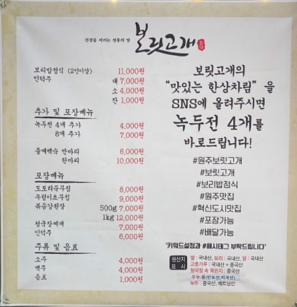 원주 혁신 도시에 들를 일이 있다면 보릿고개 본점에서 식사해 보세요~