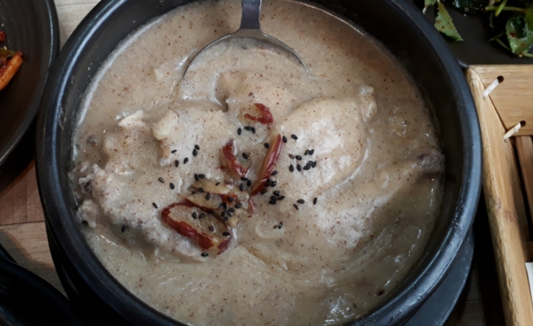 고소함이 매력적인 들깨 백숙은 어린 닭을 사용해서 식감이 야들야들합니다. 육식을 자제하는 도반과 첫 번째 방문에서 음식을 남긴 저는 들깨 백숙은 맛만 보고 포장해 왔습니다. 보릿고개는 손님이 직접 남은 음식을 포장해 갈 수 있도록 포장재를 마련해 두고 있습니다.