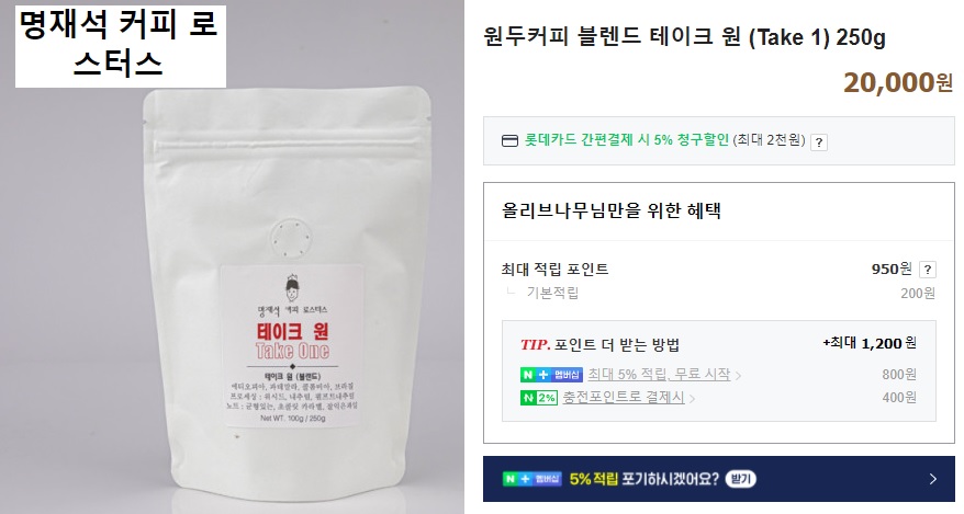 검색해 보니 스마트스토어에 명재석 커피 로스터스로 원두를 판매하고 있네.
