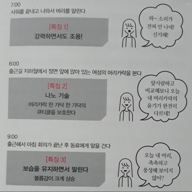 고기능성 헤어드라이어의 편리함과 성능을 소개할 때 담담하게 제품을 설명하면 매력적이지 않지요. 특정 ‘관점’을 추가하면 소비자의 주의를 집중시킬 수 있습니다.