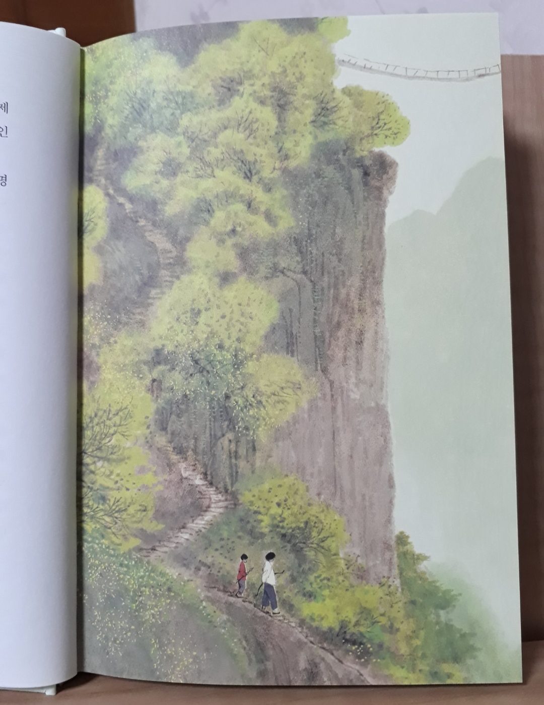 ‘한 시간 남짓 걸어 그들은 양쪽 절벽 사이로 커다란 강이 세차게 흐르는 낭떠러지 앞에 도착했다. 맞은편으로 건너갈 수 있는 유일한 수단은 밧줄이 닳고 해져서 금방이라도 끊어질듯 한 흔들다리뿐이었다.’
