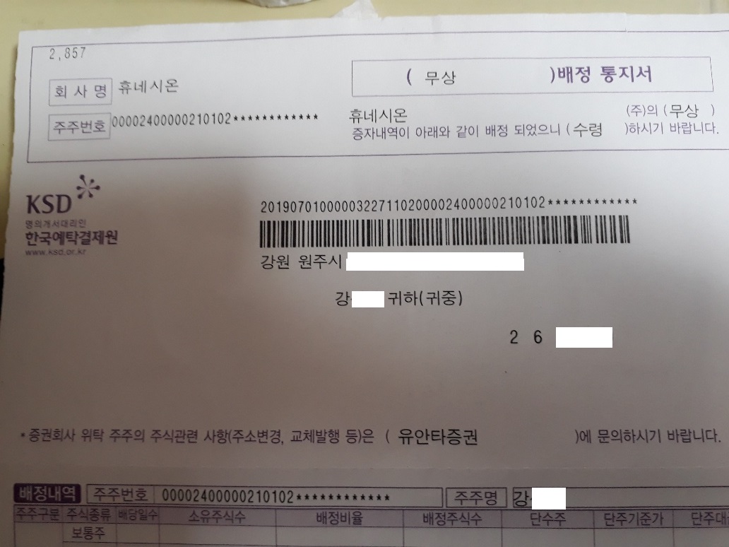 주식이란 게 당최 감을 못잡겠다. 조선업이 바닥이라는 생각에 5년 묵힐 생각으로 현대중공업을 사 뒀는데 내 허락도 없이^^ 계좌의 종목명이 한국조선해양으로 바뀌었다. 5G 관련 보안주로 사 둔 휴네시온이 무상 증자 공시로 상한가를 치더니 집으로 1:1 무상 배정 통지서가 날아왔다.