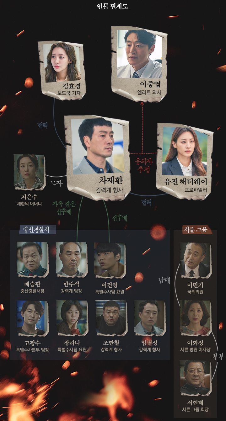 키마이라 등장인물 차재환은 진범을 끝까지 추적해서 검거한다는 집념이 강합니다. 꼼꼼한 성격, 완벽주의 기질이 있습니다. 대부분의 형사들이 무심코 지나치는 사소한 단서도 결코 놓치지 않습니다.