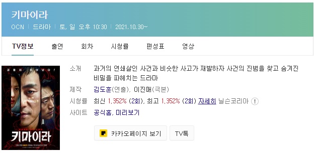 드마라 키마이라는 OCN에서 방영하는 주말드라마입니다.