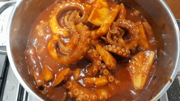 감자가 거의 익으면 낙지를 넣고 센 불에 휘리릭 뒤적이며 익힙니다.