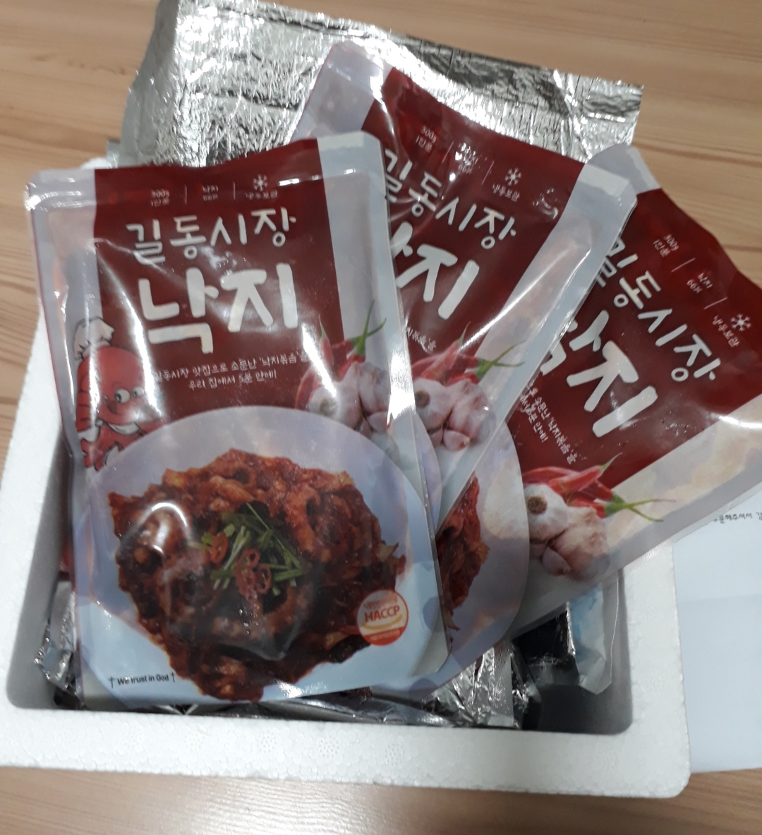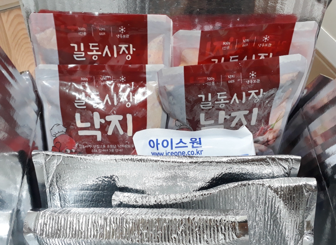 보냉팩과 아이스팩 덕분에 낙지볶음이 꽁꽁 언 상태로 도착했습니다.