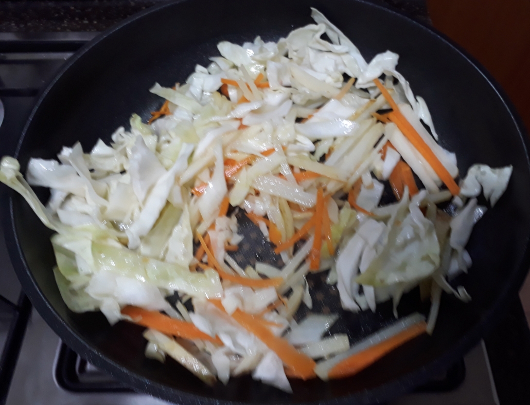 양배추, 양파, 당근을 채 썰어 준비합니다.
