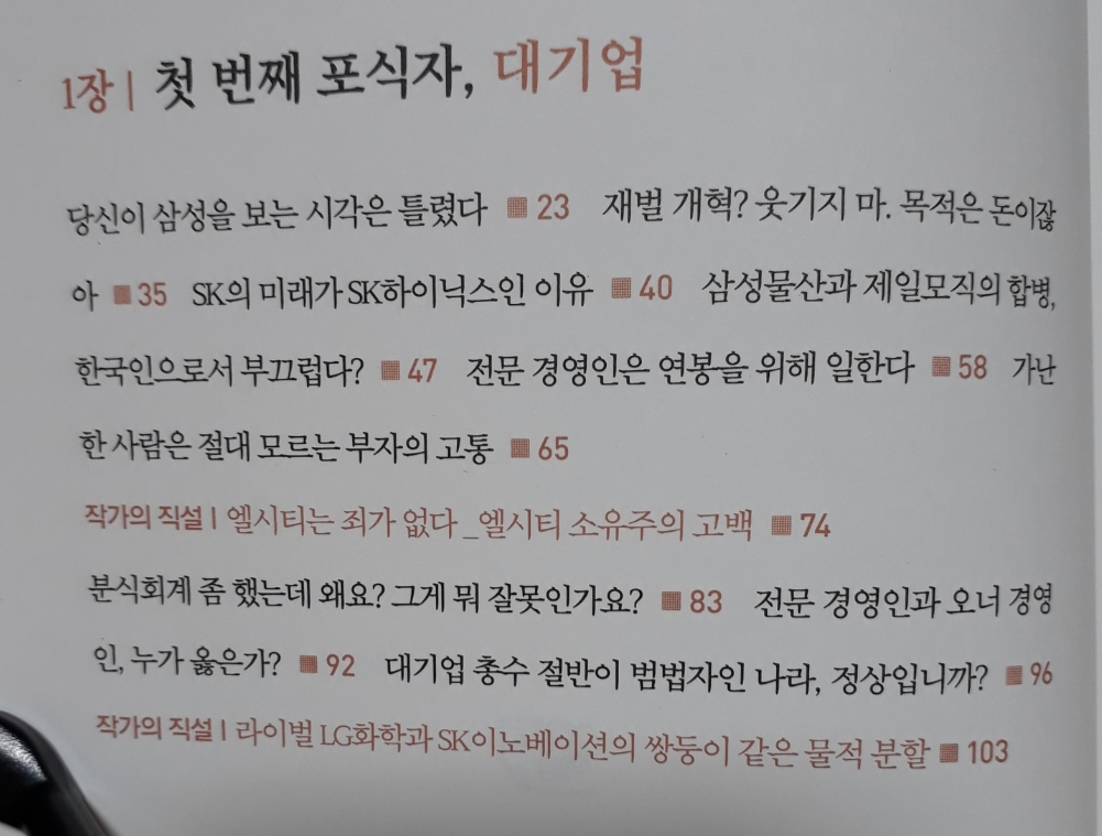 ‘대기업을 읽으려면 최대주주의 눈으로 판을 읽어야 한다. (중략) ‘이 사업으로 최대주주가 이익을 얻을 수 있는가?’ 그 대답이 예스면 함께한다.‘