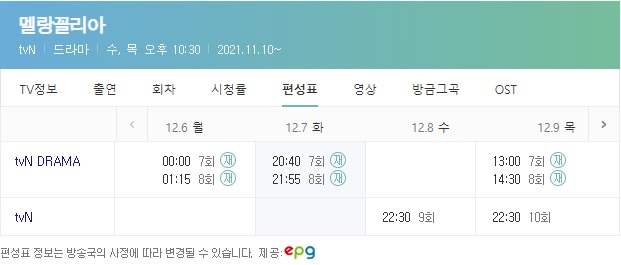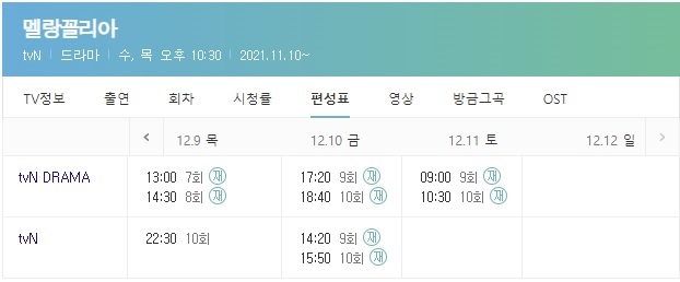 멜랑꼴리아 재방송 시간표는 아래와 같습니다.