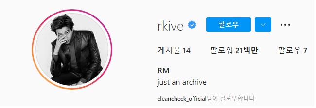 RM 진 슈가 제이홉 지민 뷔 정국 방탄소년단 멤버 인스타그램 주소는 다음과 같습니다.