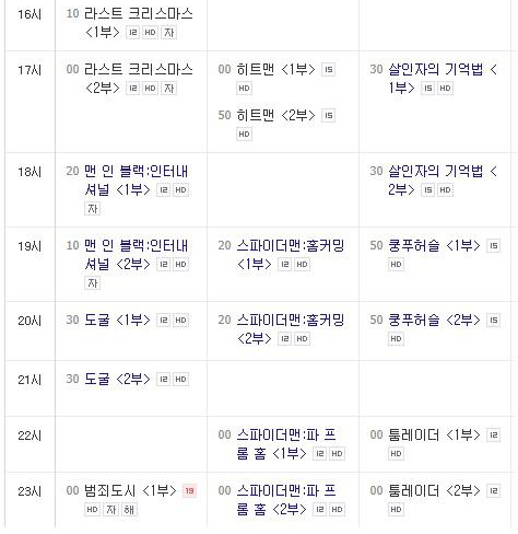 지상파 크리스마스 특선영화 편성은 아래와 같습니다.