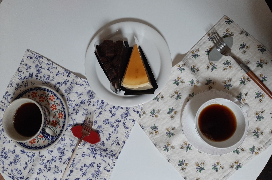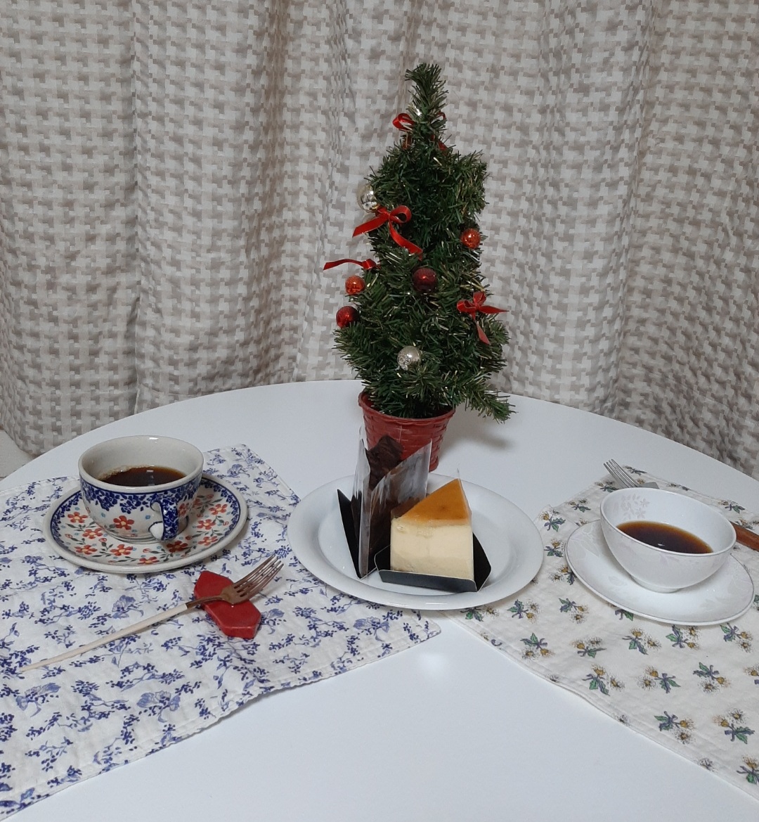 각종 기념일은, 반복되는 일상을 스페셜하게 만들 수 있어서 가볍게 챙기는 것도 괜찮다는 생각이다. 크리스마스 이브, 카페 드 마리아에서 가나슈 케이크와 크림치즈 케이크를 사고 케냐 더블A 원두로 핸드드립 커피를 내렸다. 크리스마스 트리로 티테이블을 장식했다.