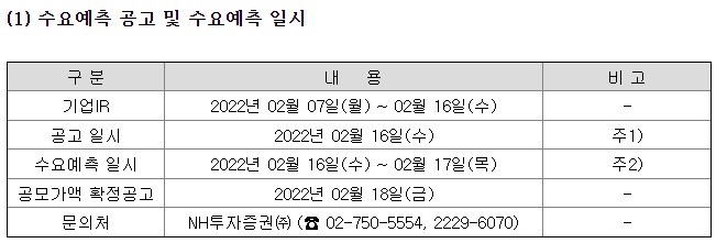 * 수요예측일 : 2022. 2. 16.(수) ~ 17.(목)