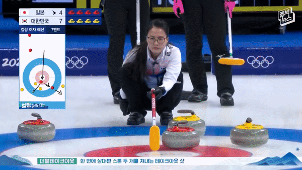 2022 베이징 컬링 일본전은 14일 오후 9시 넘어서 시작되었습니다. 3엔드에서 김영미 선수가 일본 스톤 3개를 한 번에 쳐내는 트리플 테이크아웃의 순간, 짜릿했습니다.