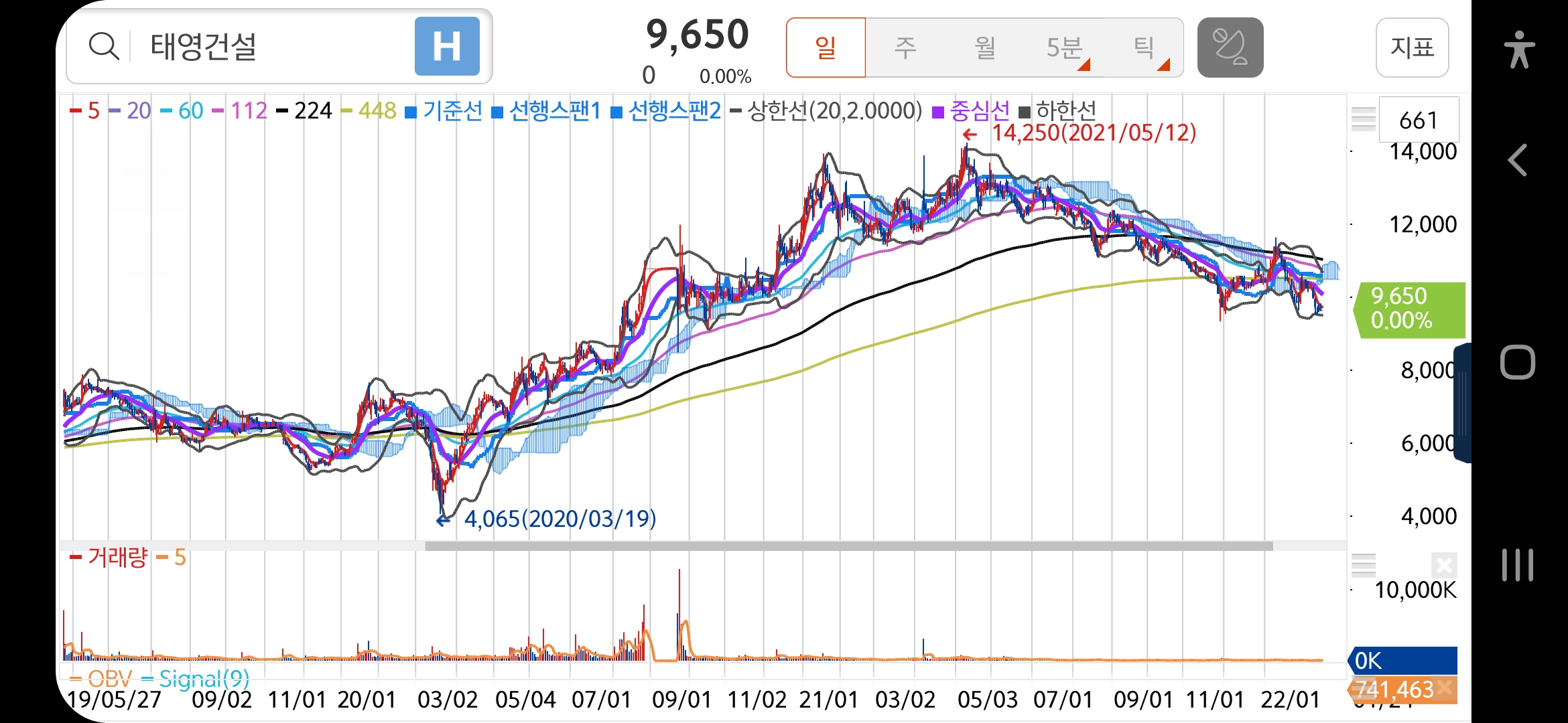어떤 종목이 저점이라는 것은 팔 사람은 거의 다 팔아서 매도세가 없다(거래량이 말랐다)는 건데요. 이런 종목은 매수세가 조금만 들어와도(거래량 증가) 들어와도 주가가 쉽게 올라갈 수 있습니다.