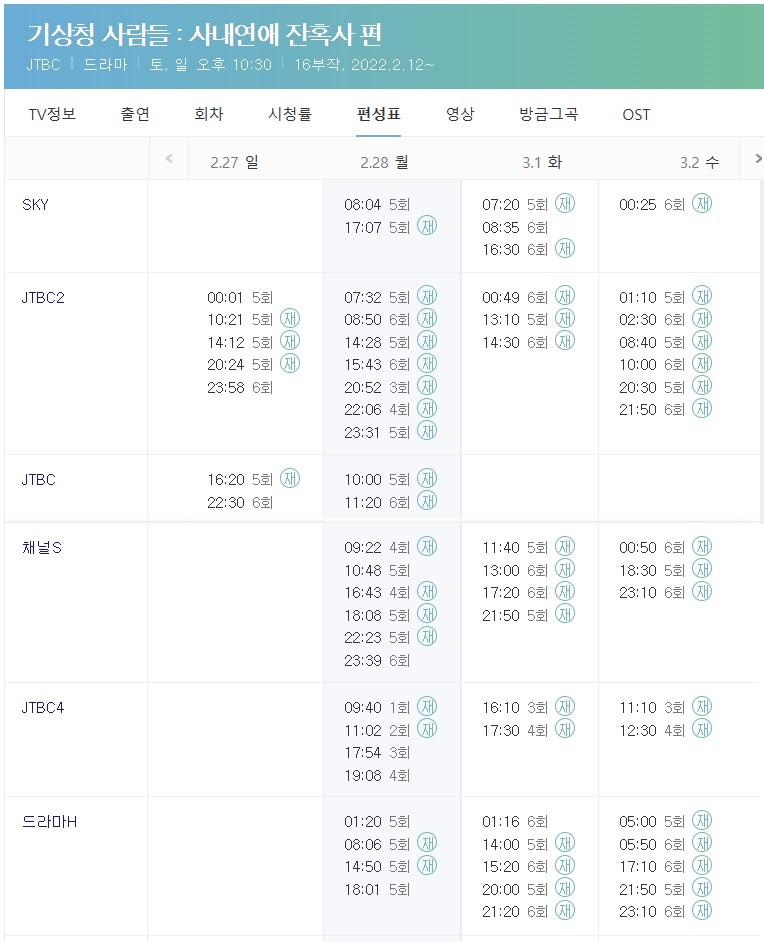 기상청 사람들 재방송 시간표는 아래와 같다.
