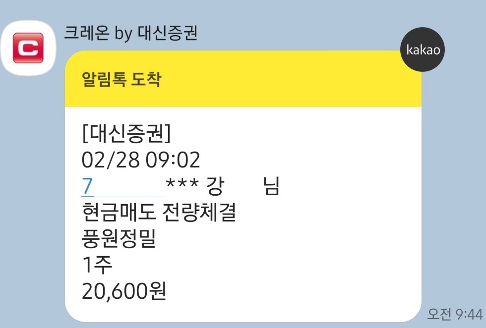 풍원정밀은 대신증권에서 매도했는데 역시 전산 처리가 원활하지 못했습니다.
