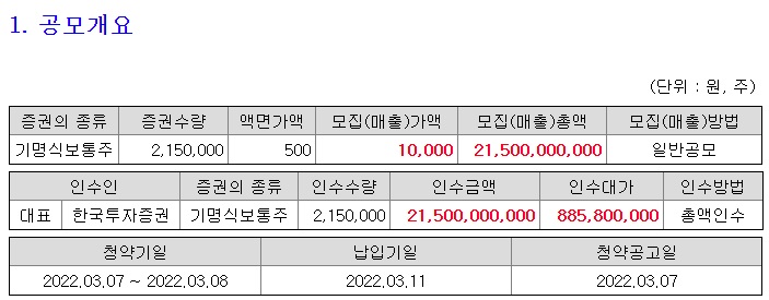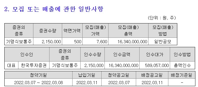 주관사는 한국투자증권입니다.