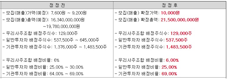 확정 공모가는 10,000원입니다.