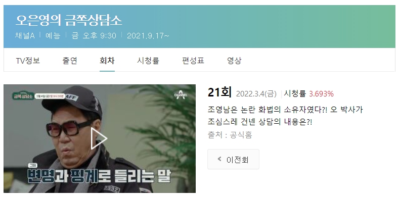 신나게 채널을 돌리다가 ‘오은영님의 금쪽 상담소’ 재방송 조영남 편에서 멈추었습니다.
