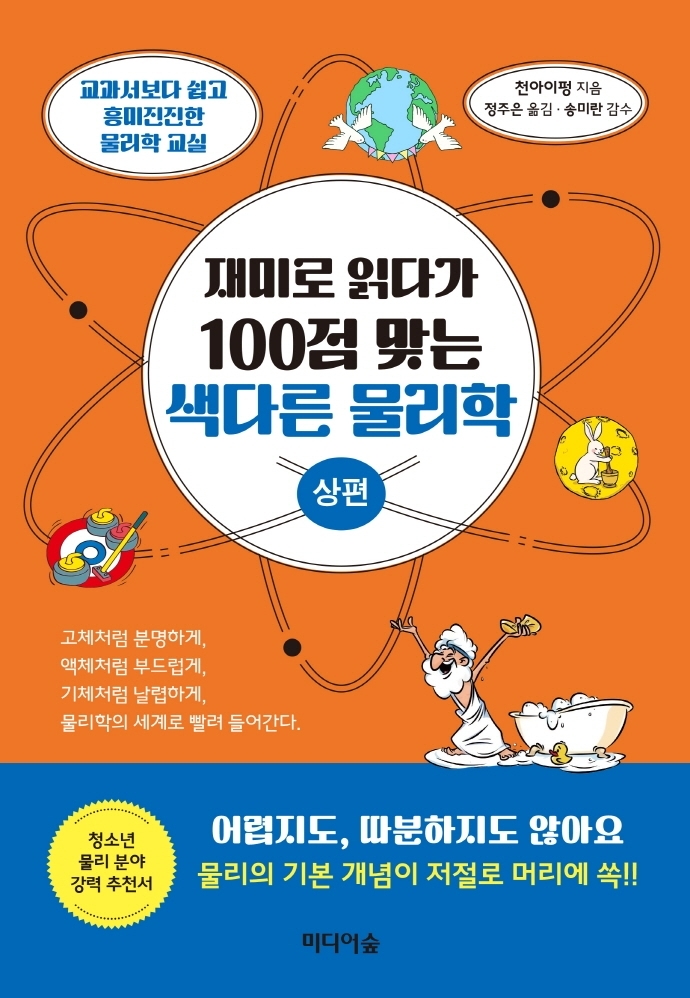 천아이펑님의 『재미로 읽다가 100점 맞는 색다른 물리학』은 청소년 교양 과학 분야 도서입니다. ‘어렵지도 따분하지도 않아요. 물리의 기본 개념이 저절로 머리에 쏙!’이라는 표지 카피가 눈에 들어옵니다. 일반적으로 물리는 어렵고 따분하다는 인식이 강하지요.