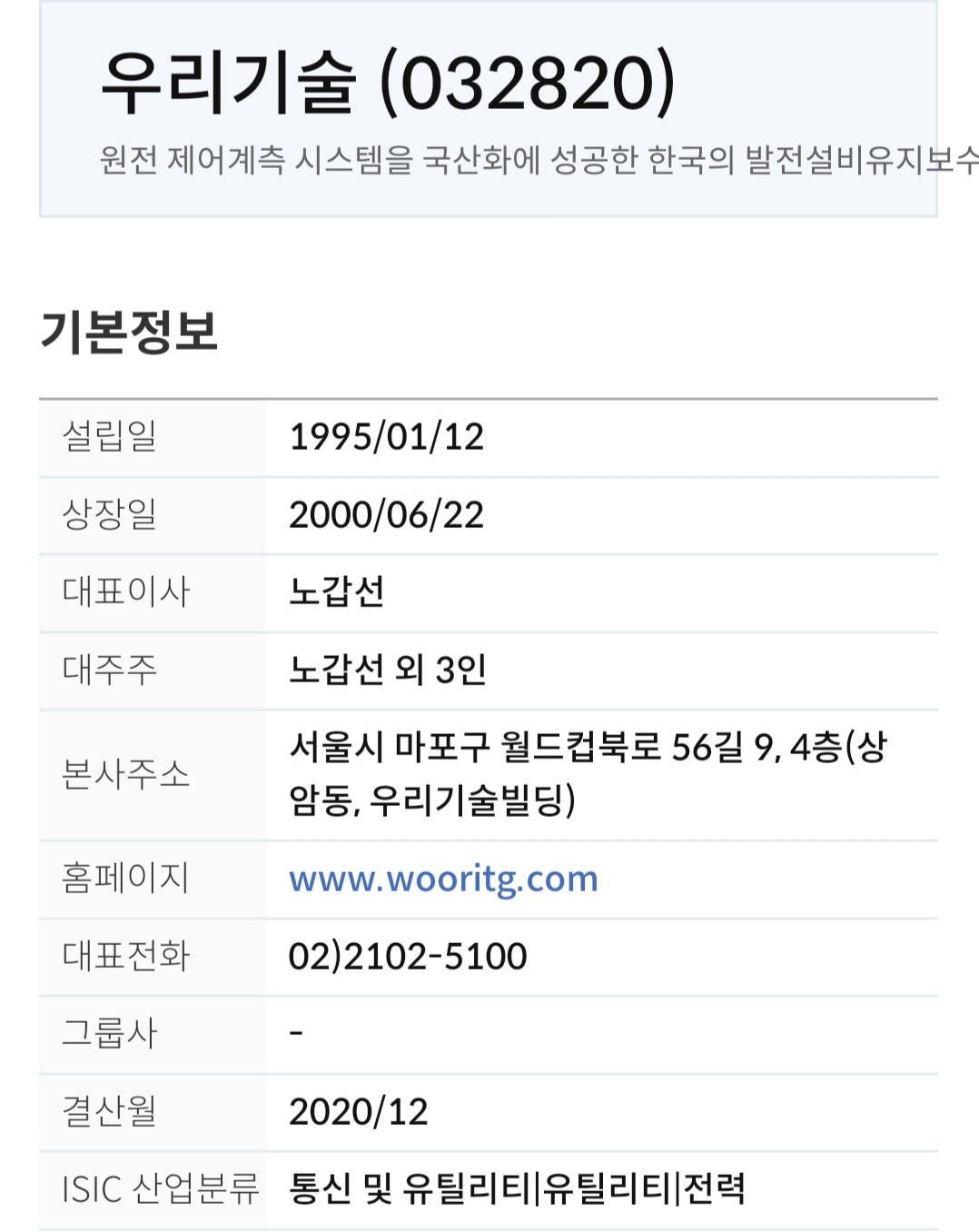 우리기술 기업개요
