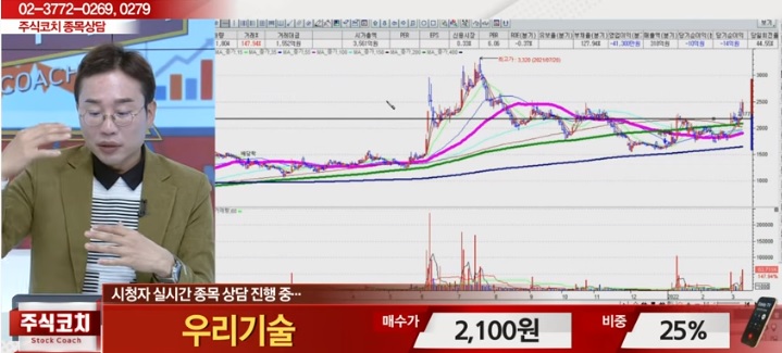 우리기술은 주가가 안정적으로 움직이기보다 뉴스 등 각종 재료에 의해 급등하거가 급락하는 경향이 있어서 주린이가 접근하기에는 위험한 종목입니다. 저는 차트를 공부하는 차원에서 보고 있습니다.