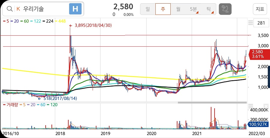우리기술은 장기보유하기 보다 스윙이나 단타로 접근해야 하는 종목으로 보이네요. 저같은 주린이의 영역은 아닌 거 같습니다.
