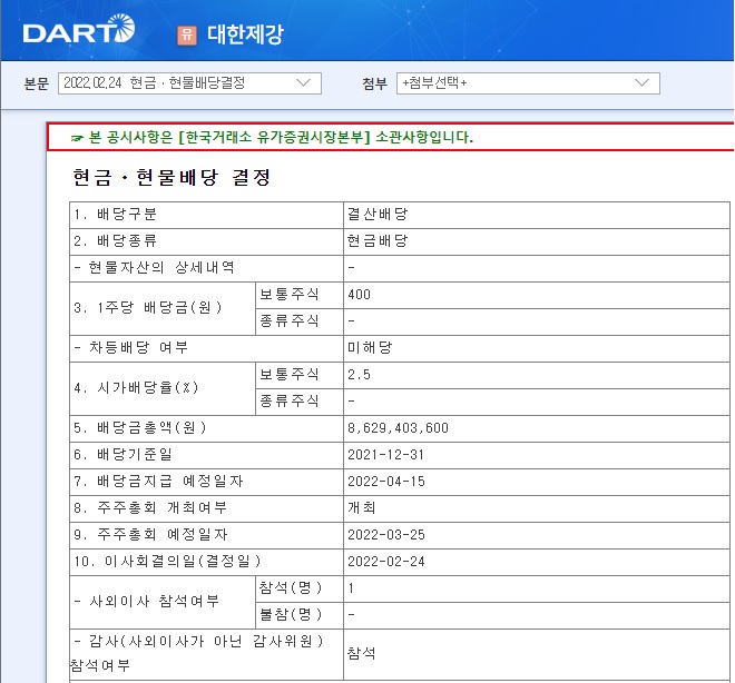 대한 제강 배당금 : 1주당 현금 400원